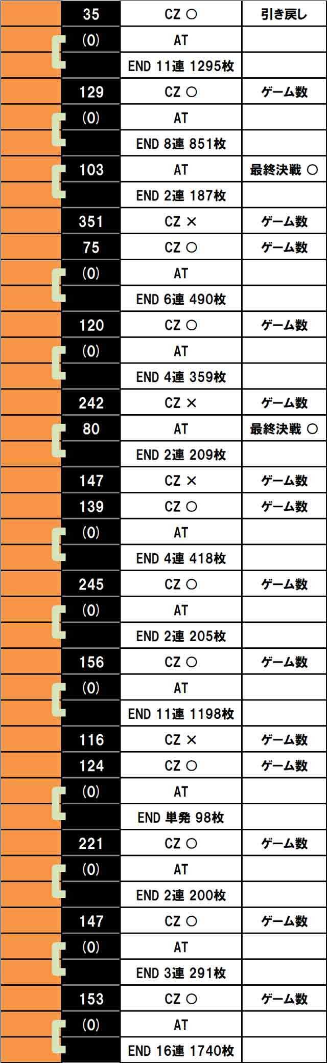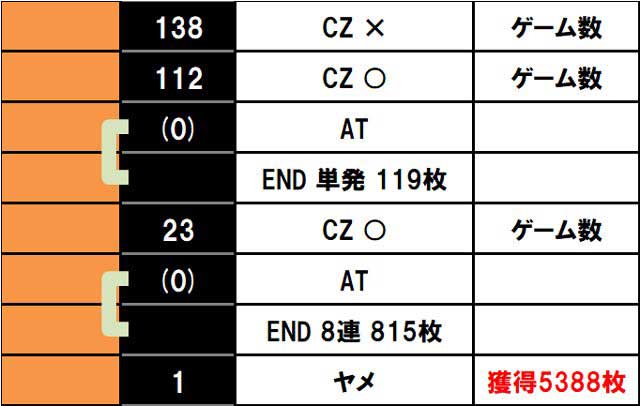 ただ、6台並びとなれば話は別。終了画面のサンプルはもちろん、CZ初当りのサンプルもどんどん集まっていく。