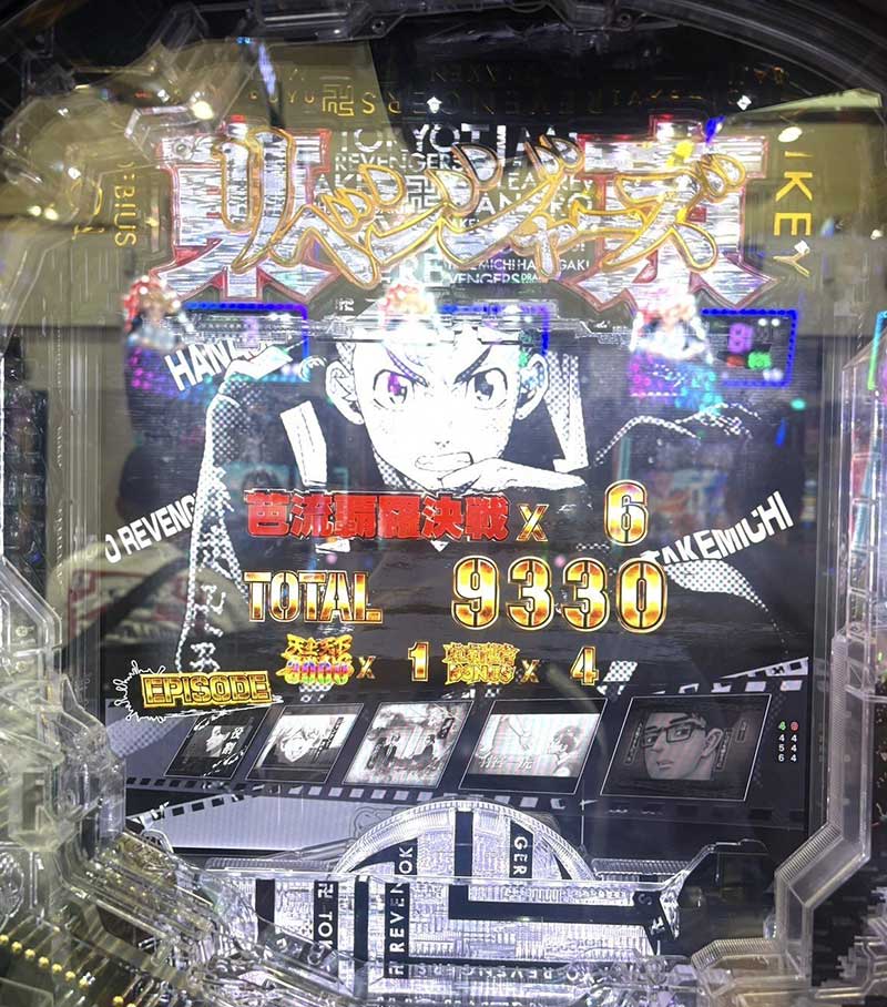 東リベ。もう今日は負けなし確定である。前に打っていた人がヤメて、隣で打っていた若い人がデータランプをポチポチ。んで、座らなかったので確保。回転数を見ると、789回転。グラフはマイナス15000発ぐらい。クッソ回らないのによく打つよなーって思いながら打ち出して2回転で当たる。そしてコレ。笑いが止まらん。先バレで打っていたから、さすがに発生した瞬間に隣からアツい視線を感じたわ。