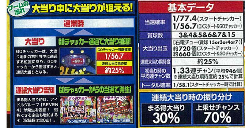 そんな本機に登場するアイドルは「SEVEN4」。なんとこの機種のために結成されたアイドルグループなんです!! グループ名はだからSEVEN(ナナ)+4(シー)! メンバーはちょっと特殊で、様々なグループとの兼任しているアイドルが多数在籍。既存のグループとはちょっと違うアイドルとなっています! もちろん機種内には楽曲も収録! 水着姿のMVなんかも見られちゃったり!?