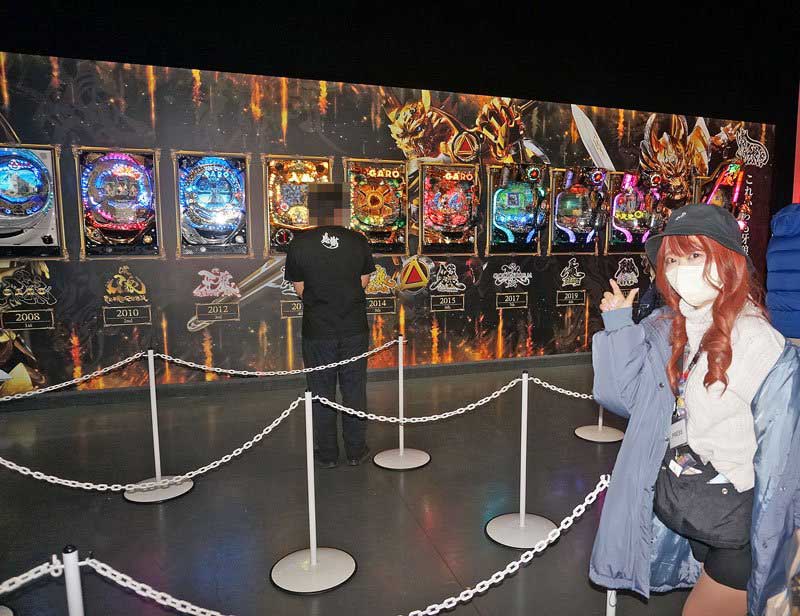 歴代の実機展示コーナーもあり、初代「CR牙狼」から最新台の「P牙狼 GOLD IMPACT」までがズラリ。