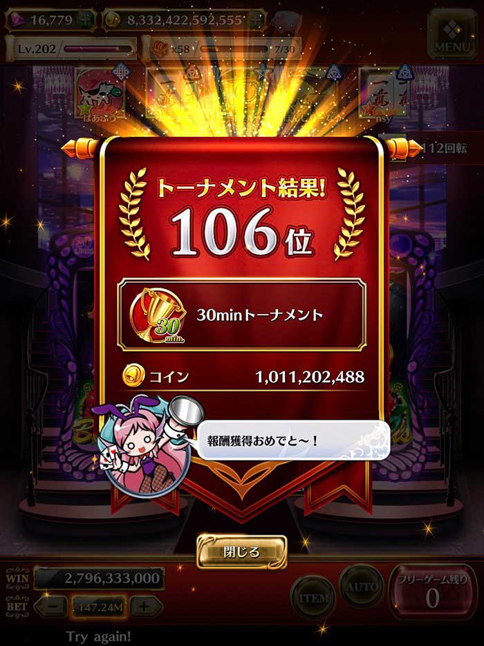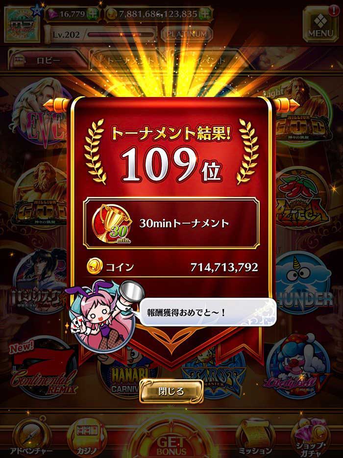 またまたトーナメントとかぶって、ラッキーコイン獲得しちゃいました♪