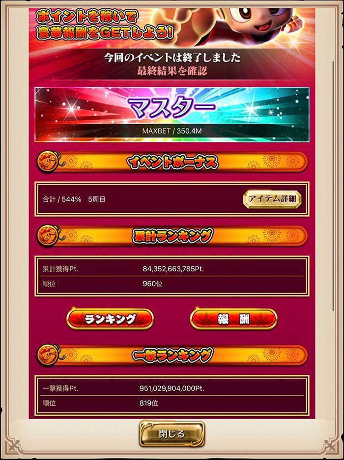 アイテムも獲得ポイントのやつ貰えたし、次のイベントへの準備ができました!