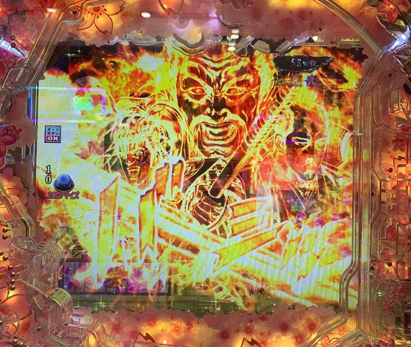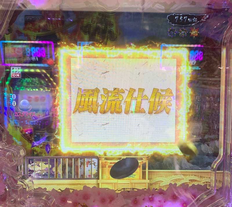 聞いたところによると、コレが初代慶次の「突然くるアツい展開」にソックリらしい! 最近の台は先読み系カスタムがついている台が多く、保留変化待ちってパターンが基本になってきているので新鮮な気持ち!!