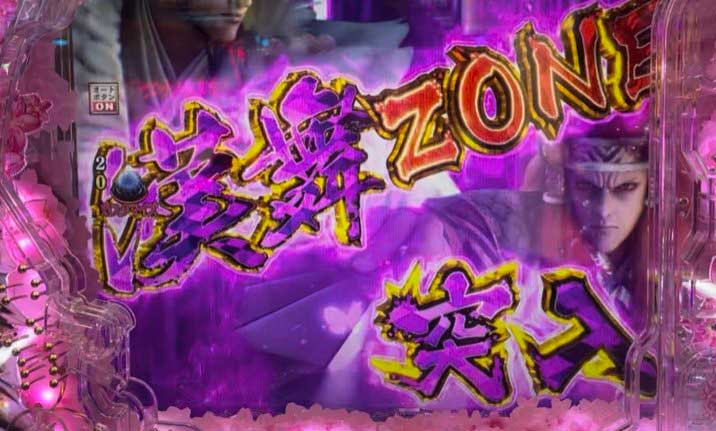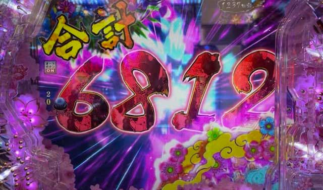 打ち始めて2時間20分。570回転目の変動開始時に天激ボタンが激しく震える。漢舞ZONEではそこまで伸びずに「6812」