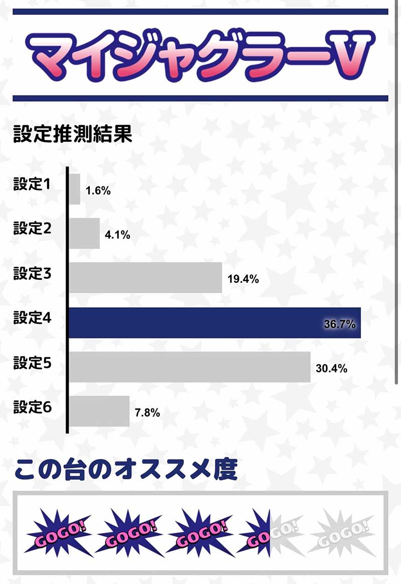 | マイジャグラーⅤ (46枚貸し・52枚交換・貯玉プレイ上限460枚) | ||