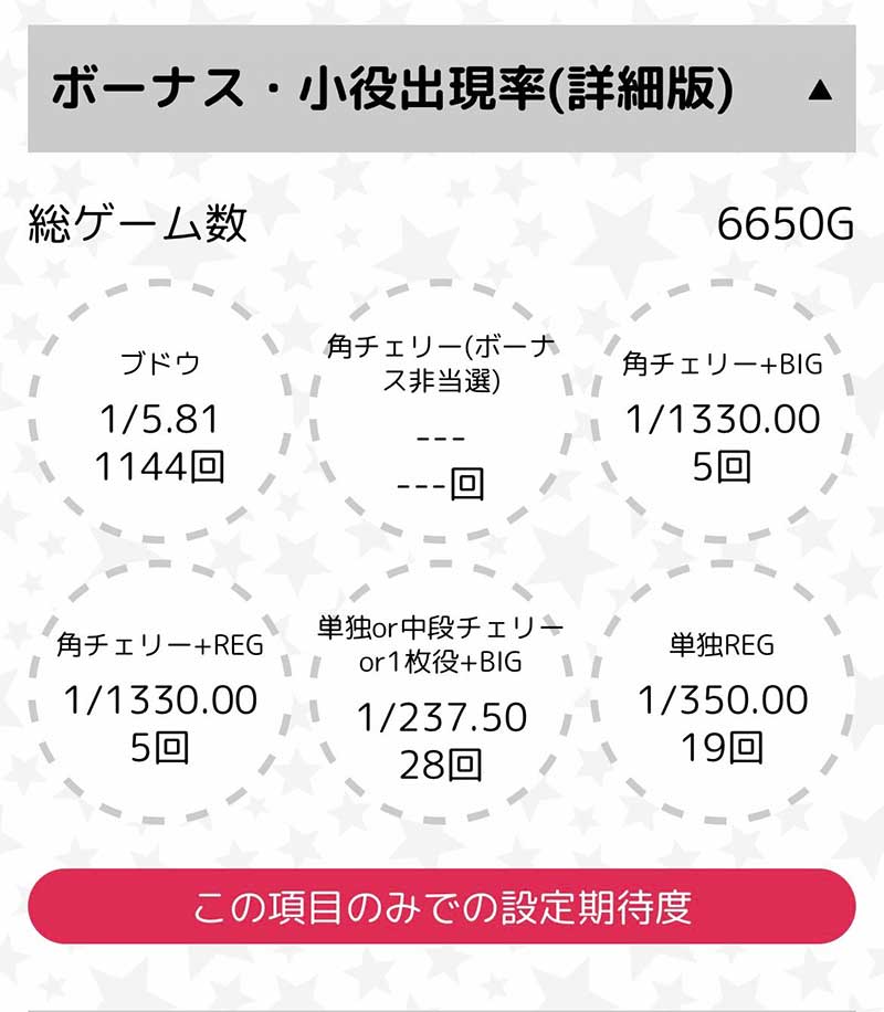 総回転6650G BIG33回 REG24回