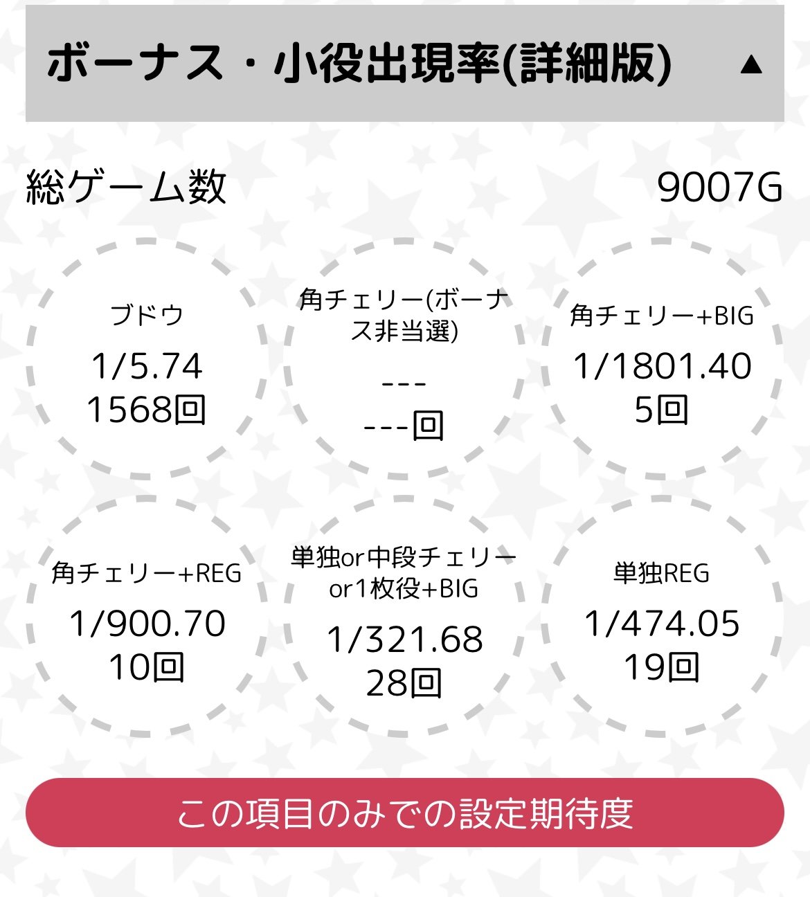 上記は10/9の実戦データです。この結果を設定推測ツールに入れると