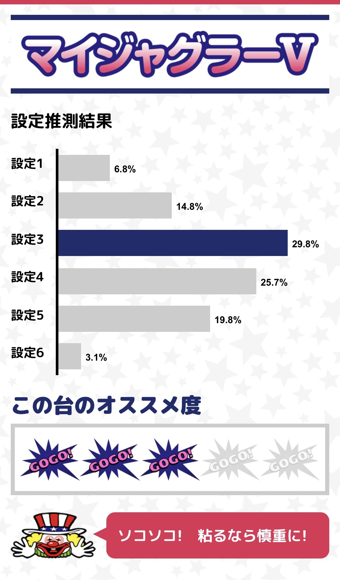 中間設定の可能性が高く、設定6の可能性が1番低いという結果に。