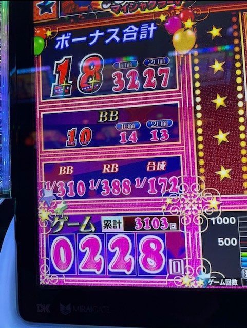 | 2台目のマイジャグラーVに移動 (7042G・BIG35・REG28) | |||