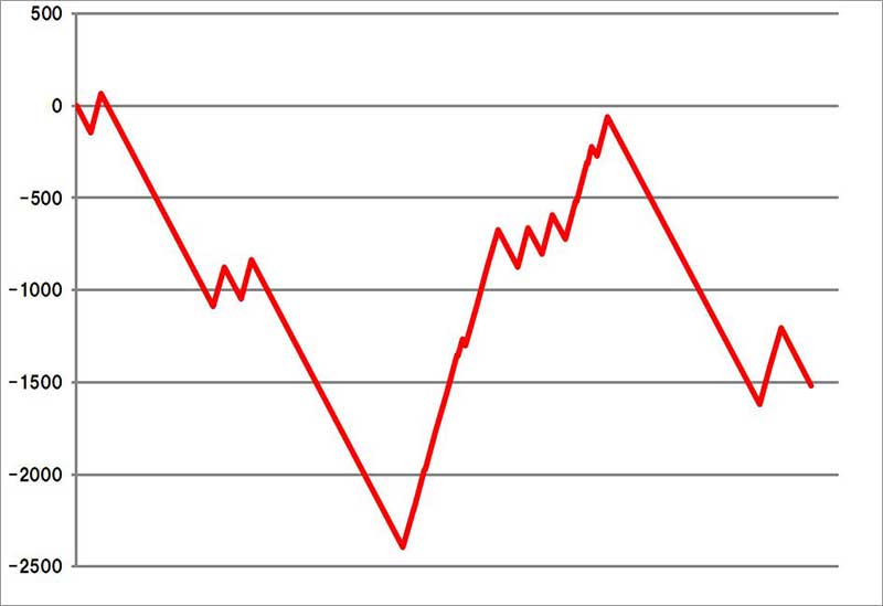 1G連のおかげで少しは取り返すことができたけど、結局マイナス1503枚で終了となりました。