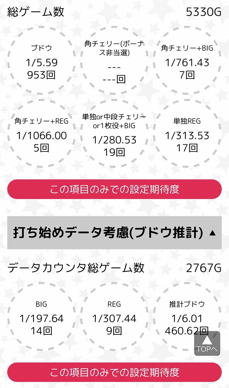 最後に打った台の設定推測ツール結果はこんな感じです(打つ前
