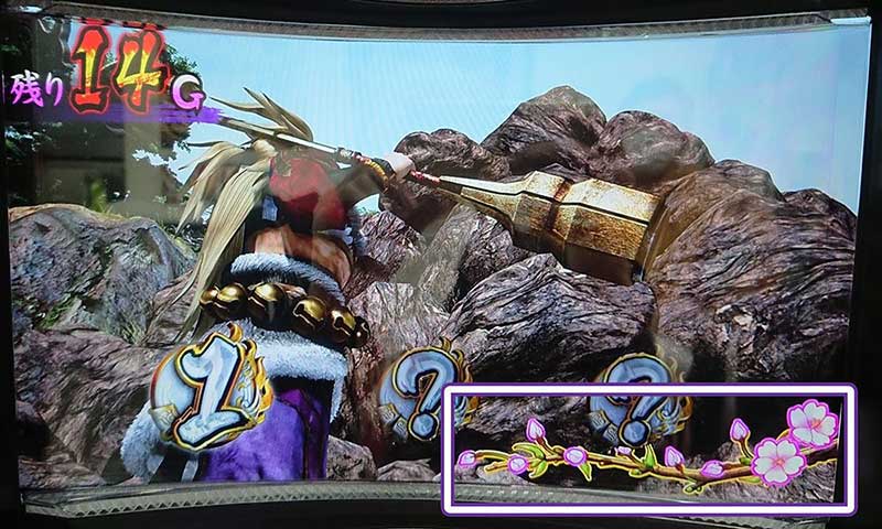今作は初代のテイストが感じられる作り。BB中の楽曲や2択チャレンジでの突忍、信長バトルといった要素が継承されています。また、上位ATを目指す過程には桜並木を目指す前田慶次が登場。初代の戦国無双で無限ARTを目指して必死に2択当てに挑んでいたのが懐かしい…。