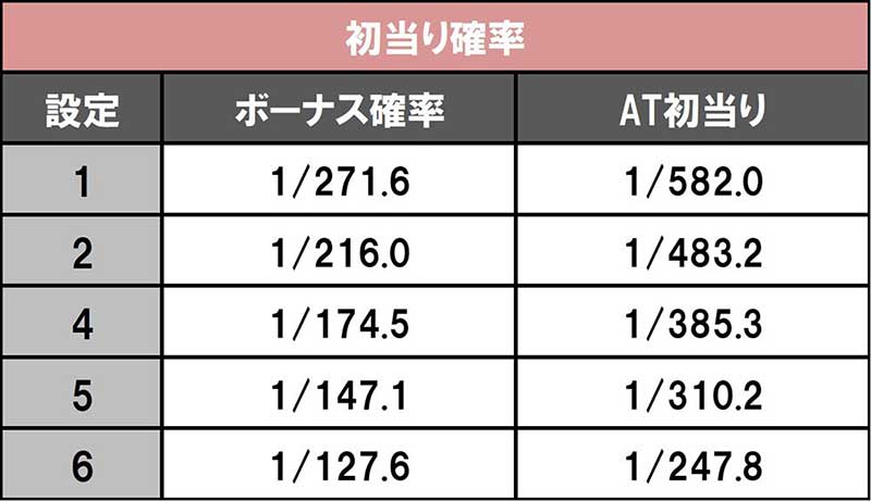 設定1と設定6が上下に飛びぬけていて、ボーナス合成だけでもかなりの差がついています。そのため、設定1を見抜くのは難しくないんじゃないかと。だとすれば、プレイヤーにとって非常にありがたい! どのあたりで手応えが感じられるか楽しみですよ。