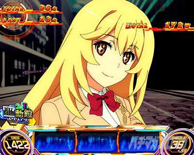 上位AT「超電磁砲OVER DRIVE」は1セット30Gのループタイプ。ループ率は約90%以上で、さらに純増が約4.0枚/Gにパワーアップしている。