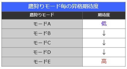 モードはAからEまでの5段階が存在し、モードAが最も昇格期待度が低く、モードEになれば昇格の期待大となります。