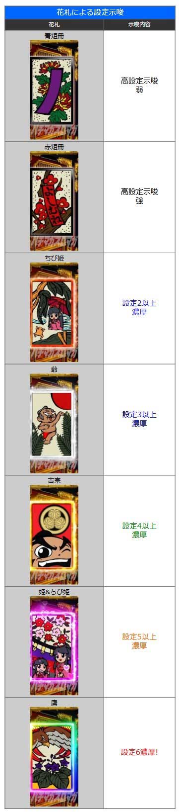 そして、姫&ちび姫なら「設定5以上」、さらに「鷹」の札が飛び出せば、最高設定である「設定6」が濃厚!