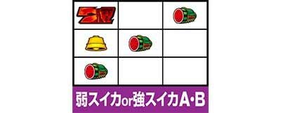 左リール上段赤7停止時、基本的にはリプレイだが、スイカの可能性があるため目押しが面倒。