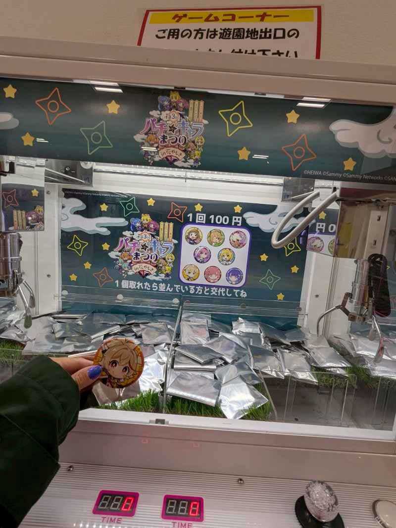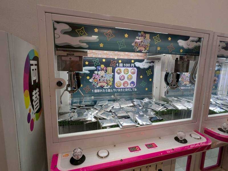 専用の的があって、それを落下させれば全9種類のランダム缶バッジがゲットできます!