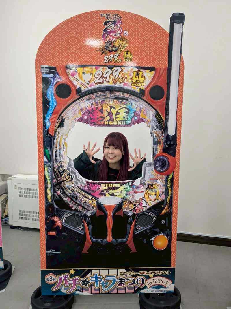 「Pスーパー海物語IN沖縄6」、「P戦国乙女7 終焉の関ヶ原 LLサイズ 299ver.」、「ツインエンジェルPARTY」の実機顔出しパネルで記念撮影~♪