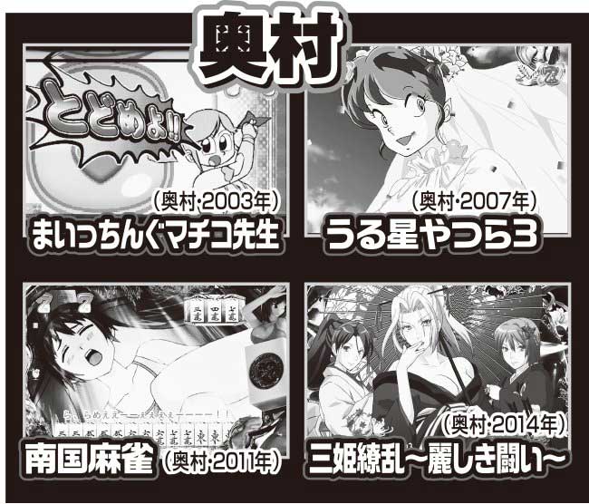 奥村は萌え台が多く、下記以外にも宇宙をかける少女や、遊砲RUSHなどもある。弥次喜多3には「舞」という姫が登場!