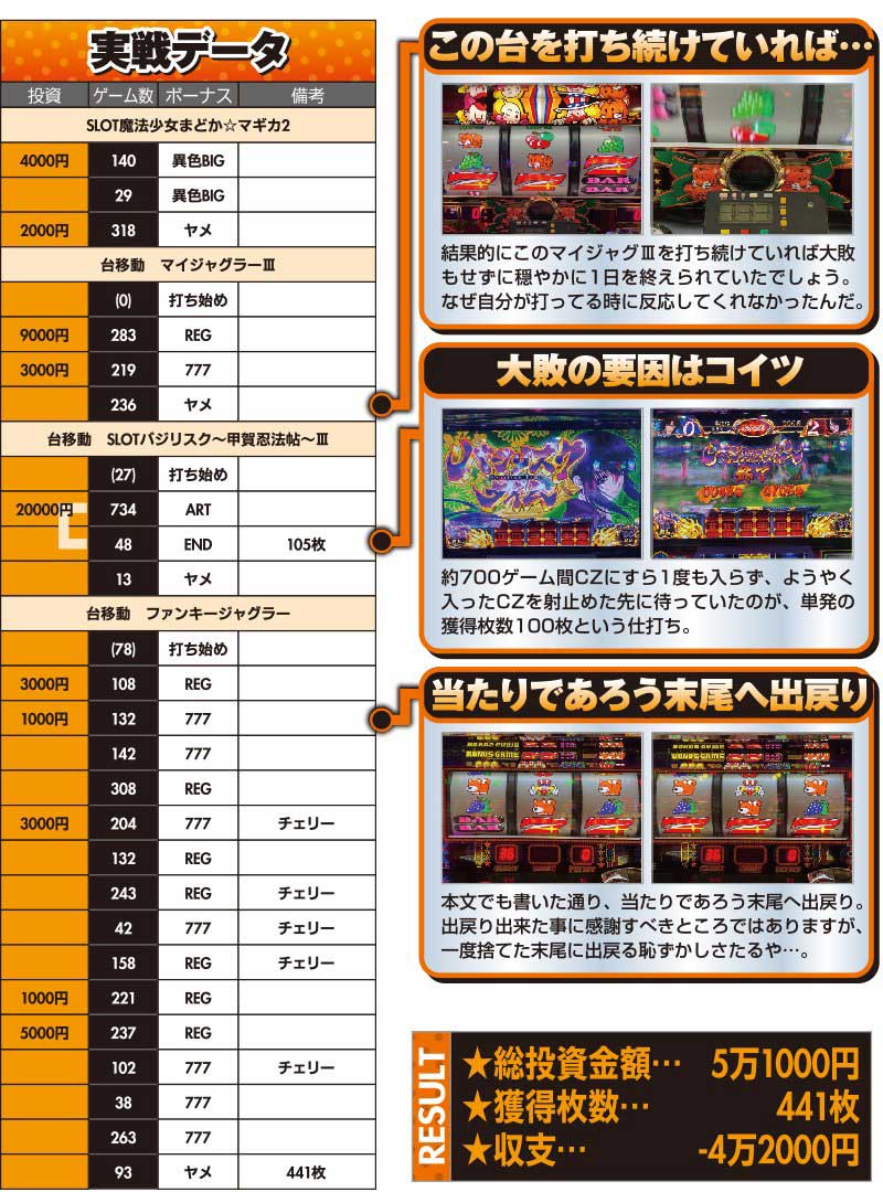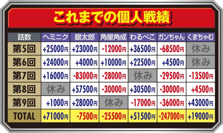 正直、前回よりも今に合わせてきたような設定配分だったように感じましたが、当たり末尾に出戻りするような立ち回りでは負けて当然かなと自分の実力不足を痛感した1日でした。これにて誌面上での最後の実戦は終了。高設定ツモって勝ちたい人生だった。