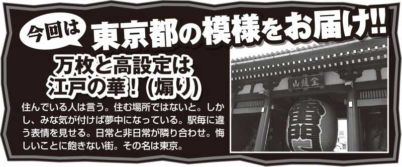 やってまいりました。日本の最大の都市。人口が日本一なので、ホール数も日本一。旅打ち第6弾最後の土地であるTOKYO! 遂に東京まで来てしまいました。
