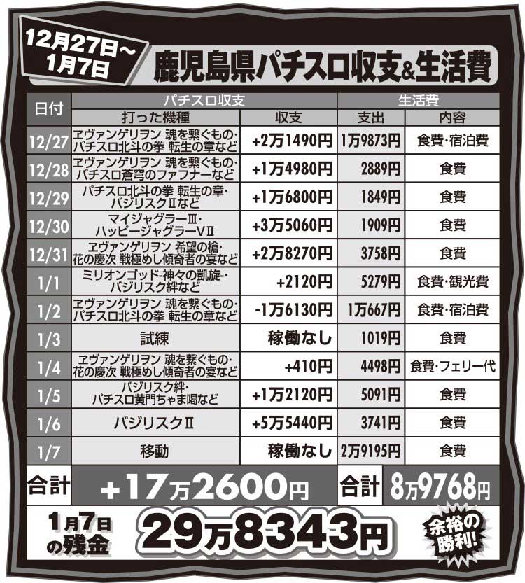 沖縄と打って変わって鹿児島では苦戦ゼロ! 実力発揮で充実の稼働!!【PLAYBACK/決死のパチスロサバイバル7 vol.6】
