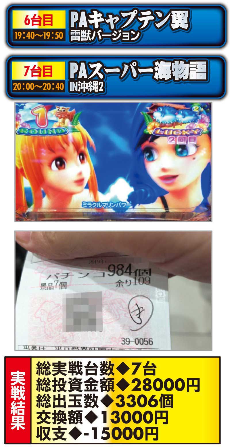 このままでは新ユニット「はじ平ボンバー」の面目丸つぶれ。出玉情報サイトで目星をつけたわけだが、実戦当日の状況を見るにつけ、どうやら見当違いだった様子。3人があの手この手の作戦で台移動を繰り返し、結果的に様々な機種を打ち散らかしてしまった様子がこの日の状況を物語っいたようにも思える。一度他店へ移動したが、そのホールに関しては試し打ちすら必要がないと判断せざるを得ないほどの状況だったとのこと…。