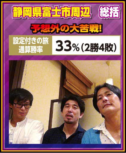 3人に共通して言える事は、前回の群馬編とは違い、勝てる台は掴めていたという事。そして時間さえあれば何とかなっていたかも? という点か。