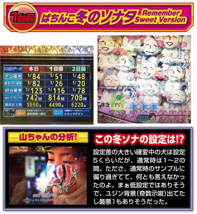 全く良いところのなかった前回。その反省を活かして今度こそ高設定を掴んでやるっす。そんな訳で設定推測しやすい冬ソナからスタート。