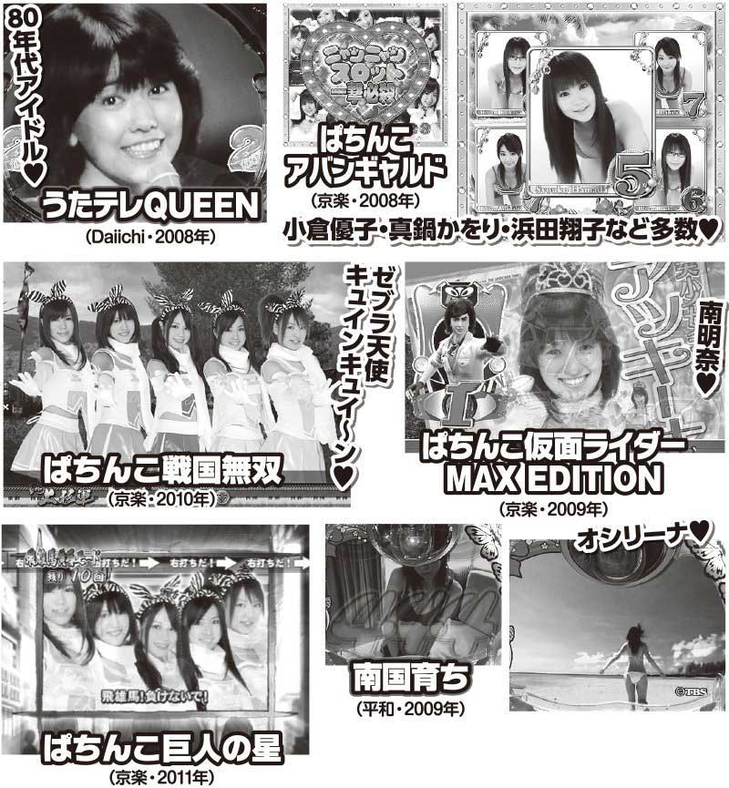 実写そのものは「華観月」(京楽・1997年)や「寛平笑劇場」(Daiichi・1997年)でも使用されているが「実写ヒロイン」的な”萌え”要素のある機種を挙げてみると90年代は意外と少ない。