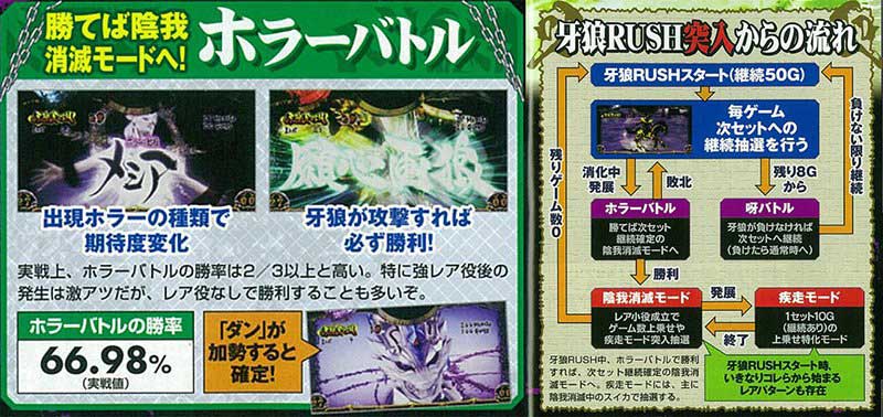 1セット50Gで毎ゲーム次セットへの継続抽選が発生。最終的にはホラーバトルor呀バトルへ。ホラーバトルは勝てば次セット確定となり、上乗せ抽選を行う「陰我消滅モード」へ突入。呀バトルは負けない限りRUSH継続となりました。