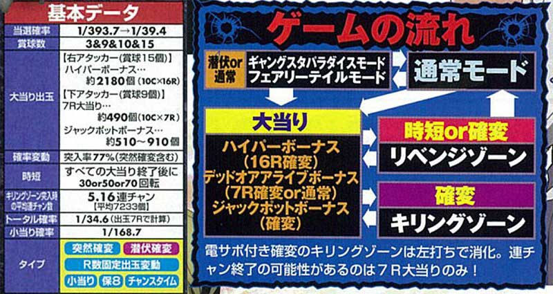 スペックは原作の激しさを連想させるMAXタイプのバトル仕様。複数の大当りを持つのが特徴で、そこに潜伏確変や小当りも絡み合う当時流行りのゲーム性となっていました。