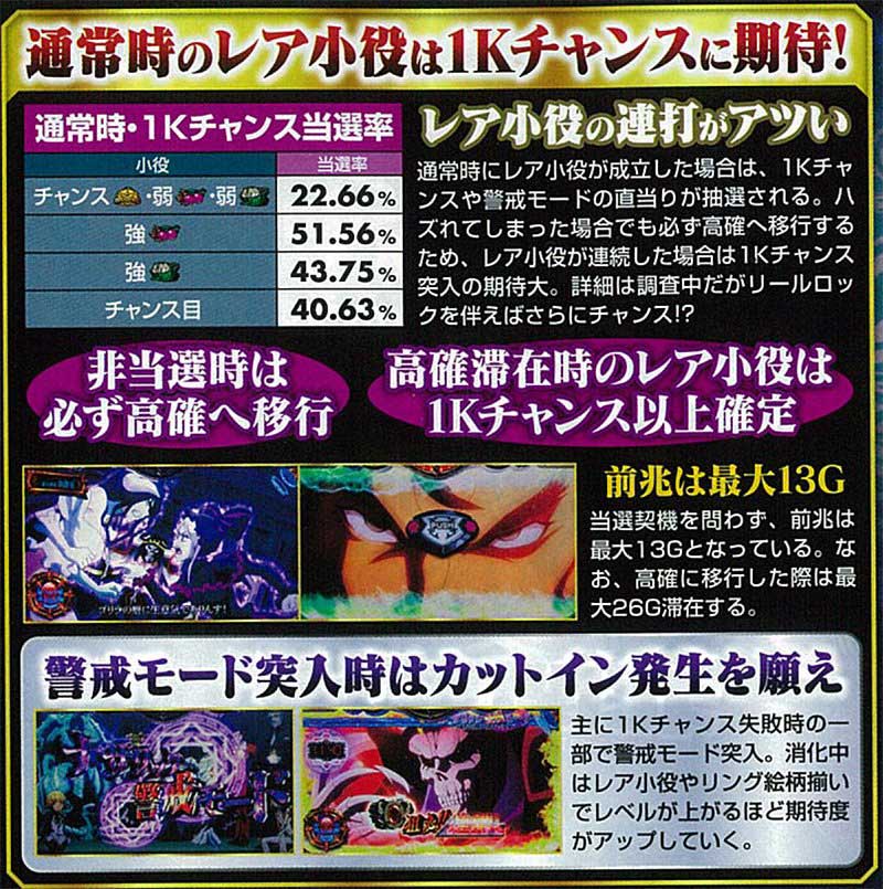 そしてそこから突入する「1Kチャンス」は自力要素ありの連続演出となっており、全7種類の演出が存在。いずれも成功すればBIG突入確定となりました。