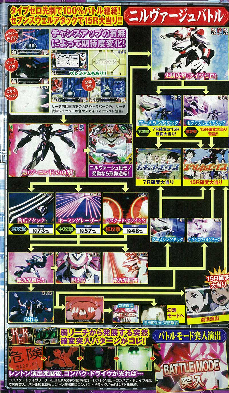 「ニルヴァーシュ役モノ」は液晶と連動して人型モードになれば期待度大幅アップ、「コンパク・ドライヴ役モノ」はエフェクトの色で信頼度が変化する役割がありました。