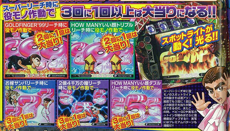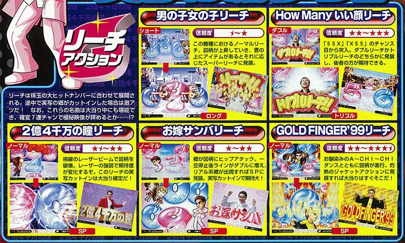 リーチではおなじみの楽曲が多数登場。激アツの「GOLDFINGER'99」リーチではおなじみのジャケットアクションも! いずれのリーチもヒットナンバーにあわせて図柄が動く演出となっていました。