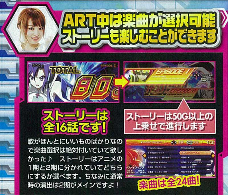 また本機といえば欠かせない「歌」はART中にも楽しむことが可能。自由に楽曲が選択できる他、50G以上の上乗せでストーリーも進行していきました。
