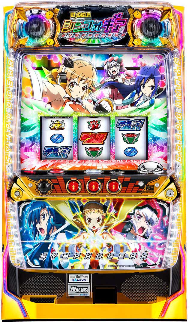 パチスロ初代マシンはボーナス+ARTタイプの5号機。原作ファン納得の演出群と独自の「撃破数テーブル」を搭載したART「シンフォギアRUSH」で人気となりました。