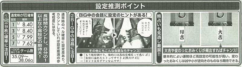 設定推測要素も多く、小役確率だけでなく、BIG中の液晶や熊占いにも秘密が存在。高設定での安定したスペックとあわせて、立ち回りに役立てることができました。