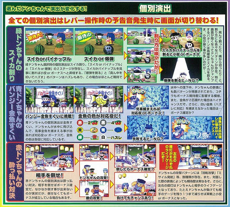 タイプはもちろんノーマルタイプ(A400)。6号機ではRTが搭載されていますが、4号機の「ドンちゃん2」には非搭載。ただし演出などは4号機から6号機へほぼ完全踏襲されています。