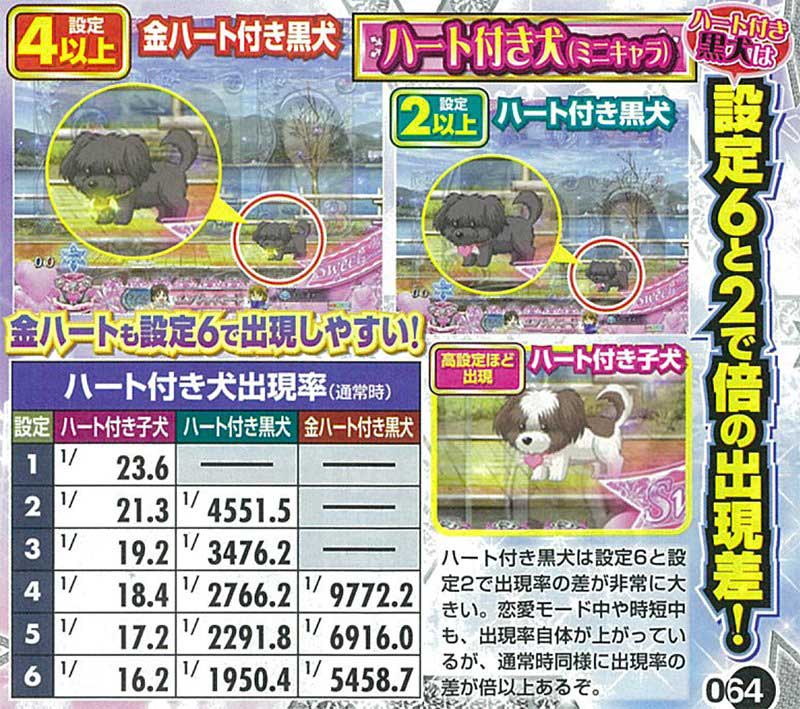 ちなみにユジン系の演出は奇数設定示唆につながりやすいが、ハート付き犬や入賞時フラッシュの出現率が低いと設定1の可能性が高くなってしまうなど、一要素だけでなく各要素をまんべんなくチェックすることが重要となるぞ。