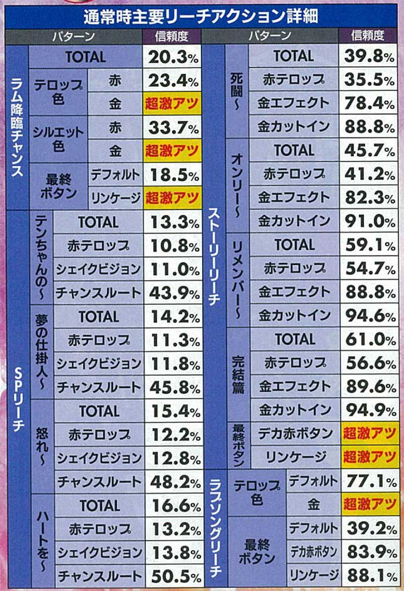 特にラムリーチは激アツでテロップや最終ボタンなどにチャンスアップが1つでも出現すれば信頼度大幅アップとなるぞ。
