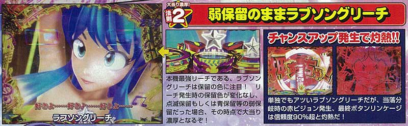 また保留変化も重要で、液晶左下に出現するSDキャラがラムちゃんならば、怒りの電撃保留や赤保留以上に変化する大チャンスとなる。