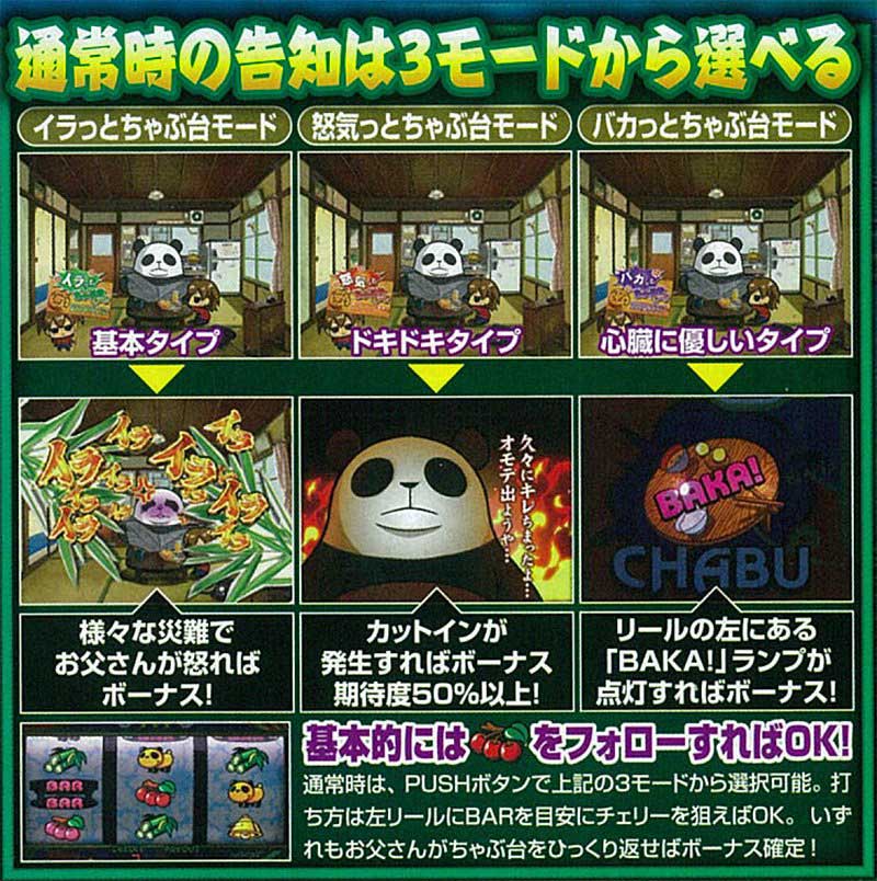 世界観やキャラは独特ですが、ゲーム性はいたってシンプルなノーマルタイプ。ちゃぶ台をひっくり返せばボーナス確定という衝撃の告知アクションが話題となりました。