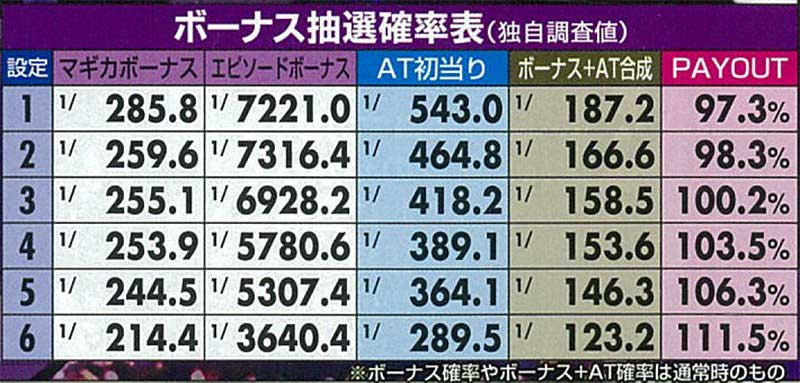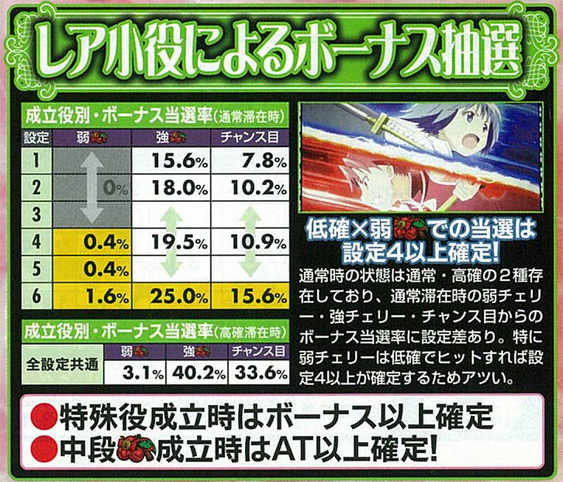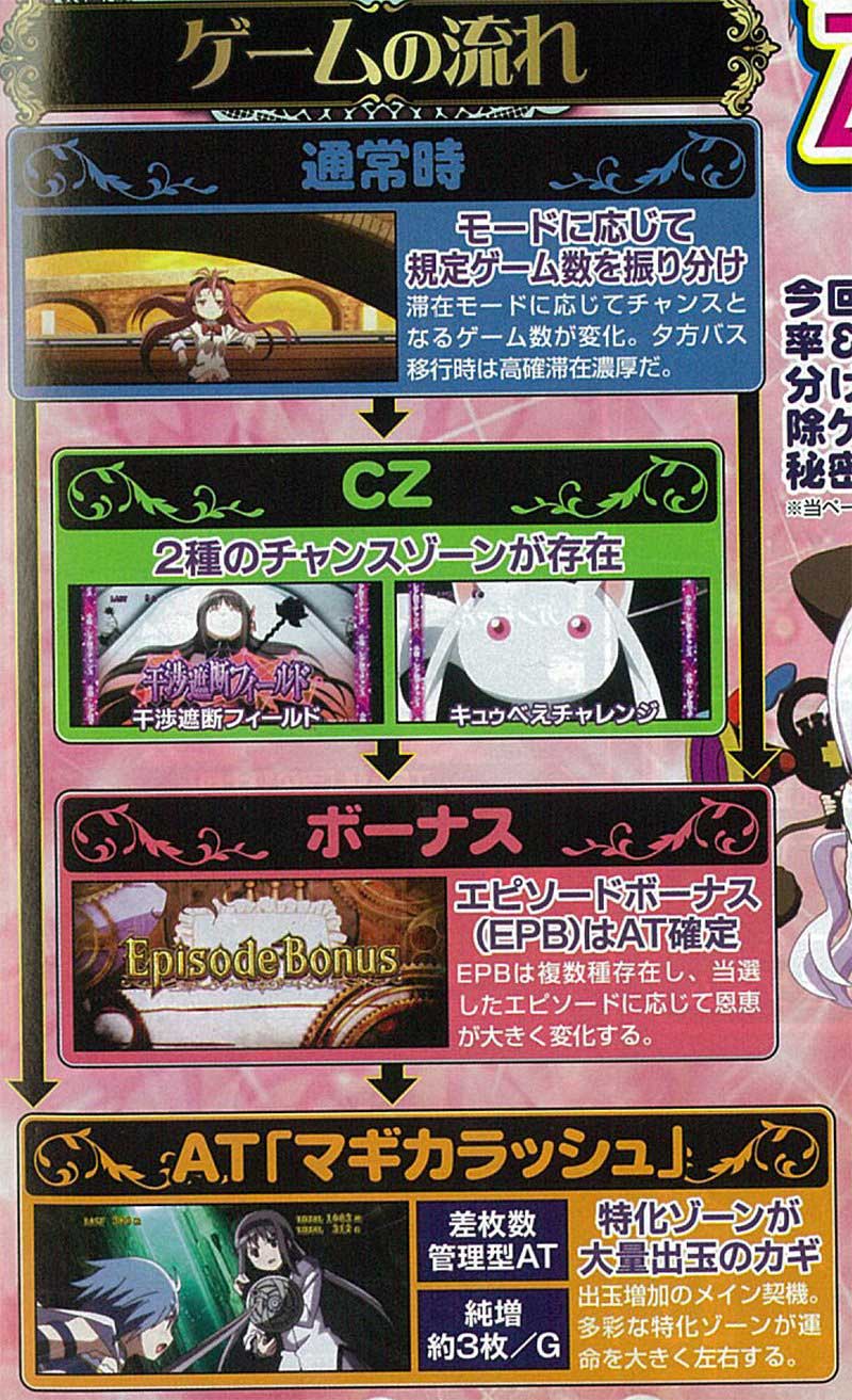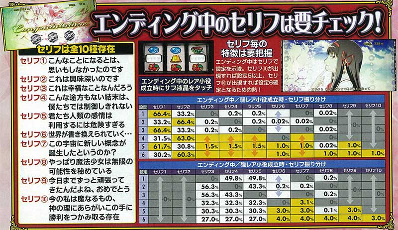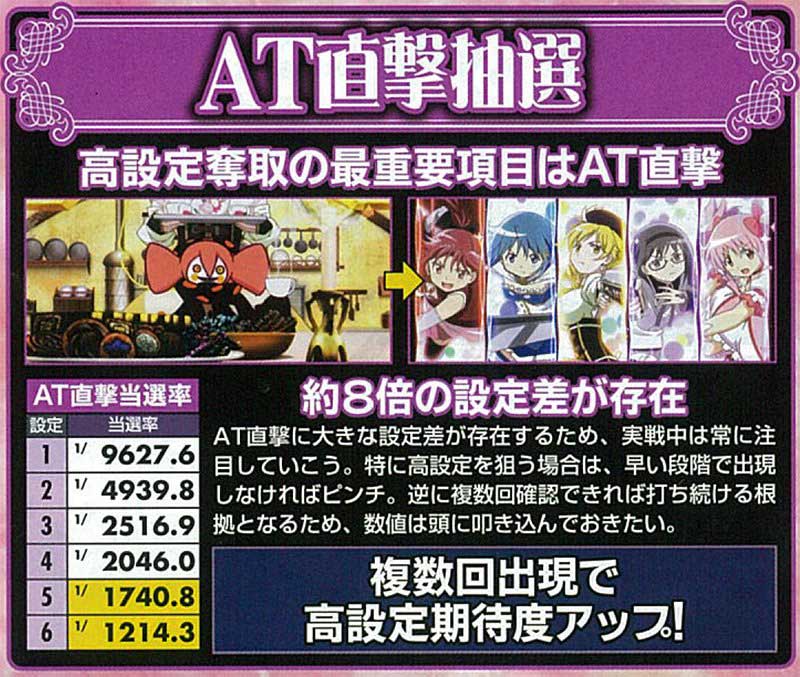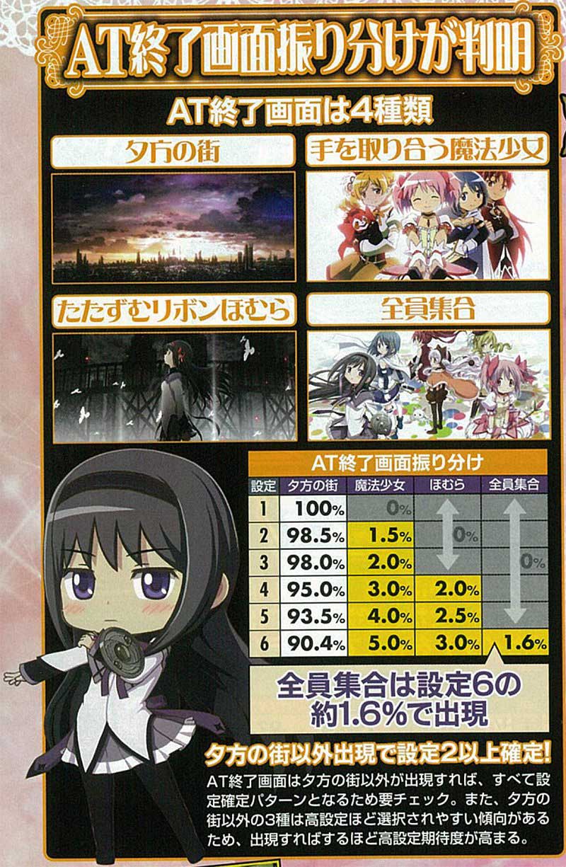 設定差のあるポイントが多いので、それぞれに注目すれば設定看破も比較的難しくないはず。AT「マギカラッシュ」中の特化ゾーン(「くるみ割りの魔女」「ほむらVSマミ」「悪魔ほむらゾーン」)でどれだけ上乗せできるかが勝利のカギを握っている。