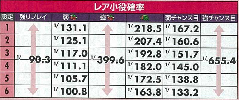 また各小役は当選するタイミングがポイントで、中でも出現率の高いリプレイは随所で重要な要素となる。またレア小役はどのタイミングでひいてもその後の展開に期待できる。
