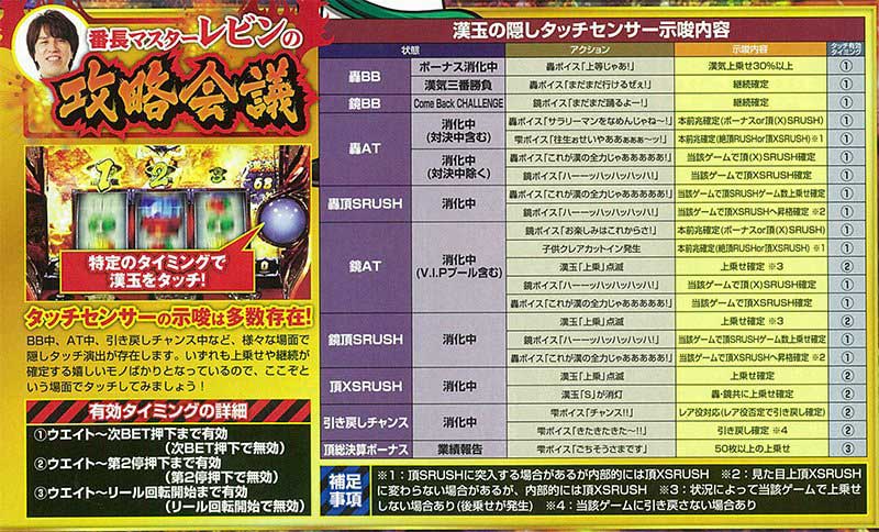 また前兆ゲーム数も要確認。本機では前兆は4~38G継続し、31Gを超えた時点で本前兆確定となる。隠しタッチセンサー演出の法則とともに覚えておけば、よりアツく楽しむことができるはずだ。